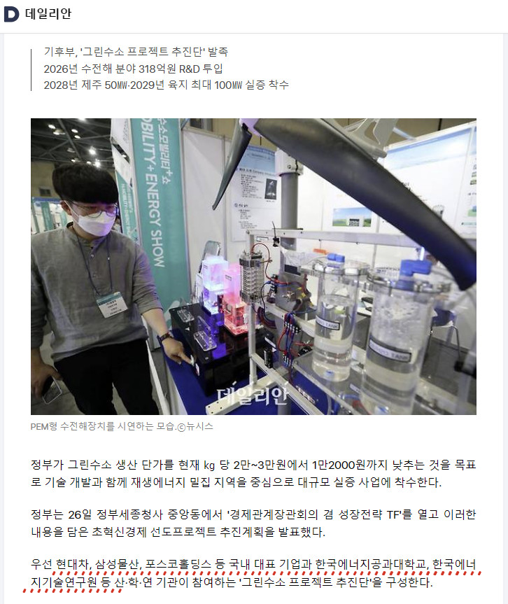 2025 November 26│ 「초혁신경제 그린수소 프로젝트 추진단」출범 2025.12.06 19:24 출처: 데일리안 다음글 : 다음글이 없습니다. 이전글 : 2025 November 26│ 「청정수소 및 암모니아 혁신연구센터」 2025년 인증서 수여식 목록